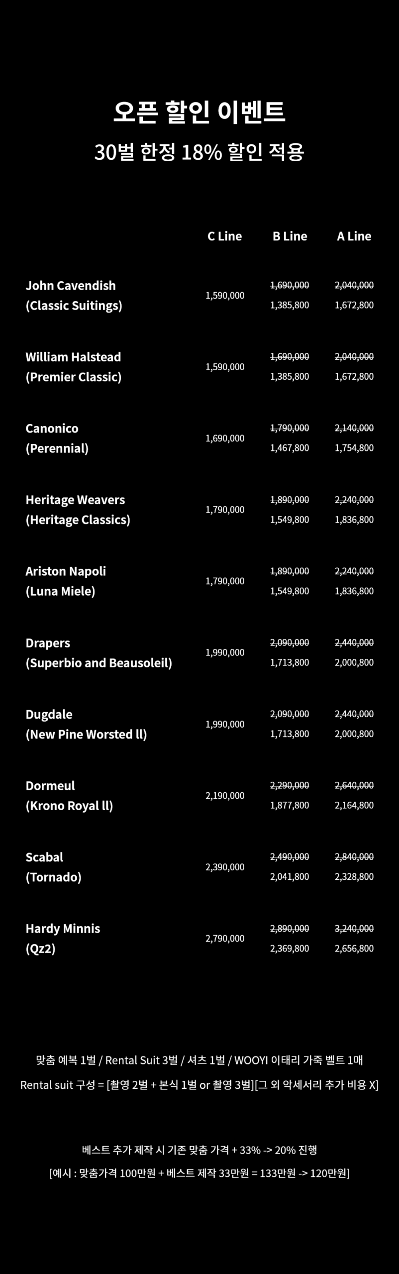 또한 모든 고객에게 렌탈 수트 스타일링 제안서를 제공합니다.